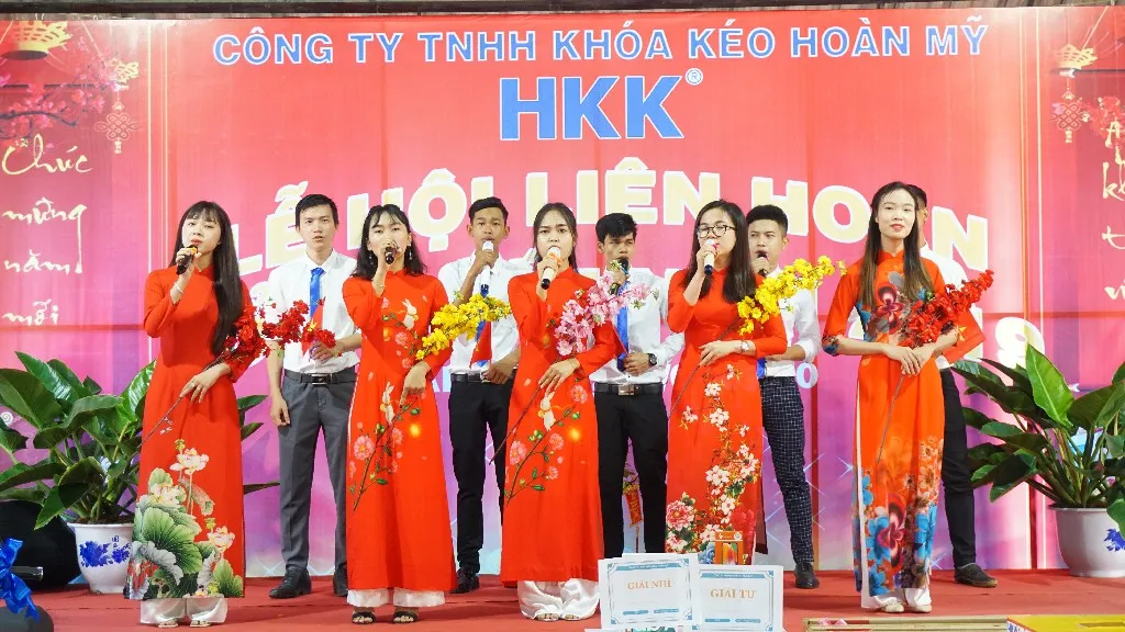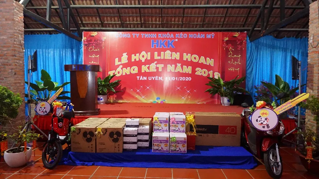 Ngày 11/1/2020 vừa qua trong không khí chuẩn bị tết Nguyên đán Canh tý. Công ty TNHH Hoàn Mỹ tại Tân Uyên đã tổ chức lễ hội liên hoan tổng kết năm 2020. Buổi lễ đã đón chào sự hiện diện của Bà chủ tịch HĐTV, Ông cố vấn cấp cao – đồng sáng lập nhà máy HKK, Ông Tổng giám đốc, cùng ban giám đốc cùng toàn thể nhân viên công ty tham dự buổi lễ.